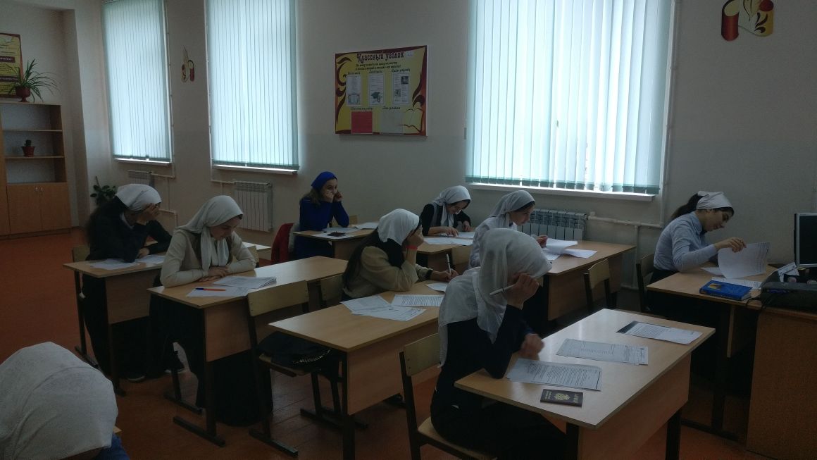 Сегодня, 10 опреля 2017 года, в нашей школе проходит пробный эгзамен в 9-х классах по чеченскому языку.